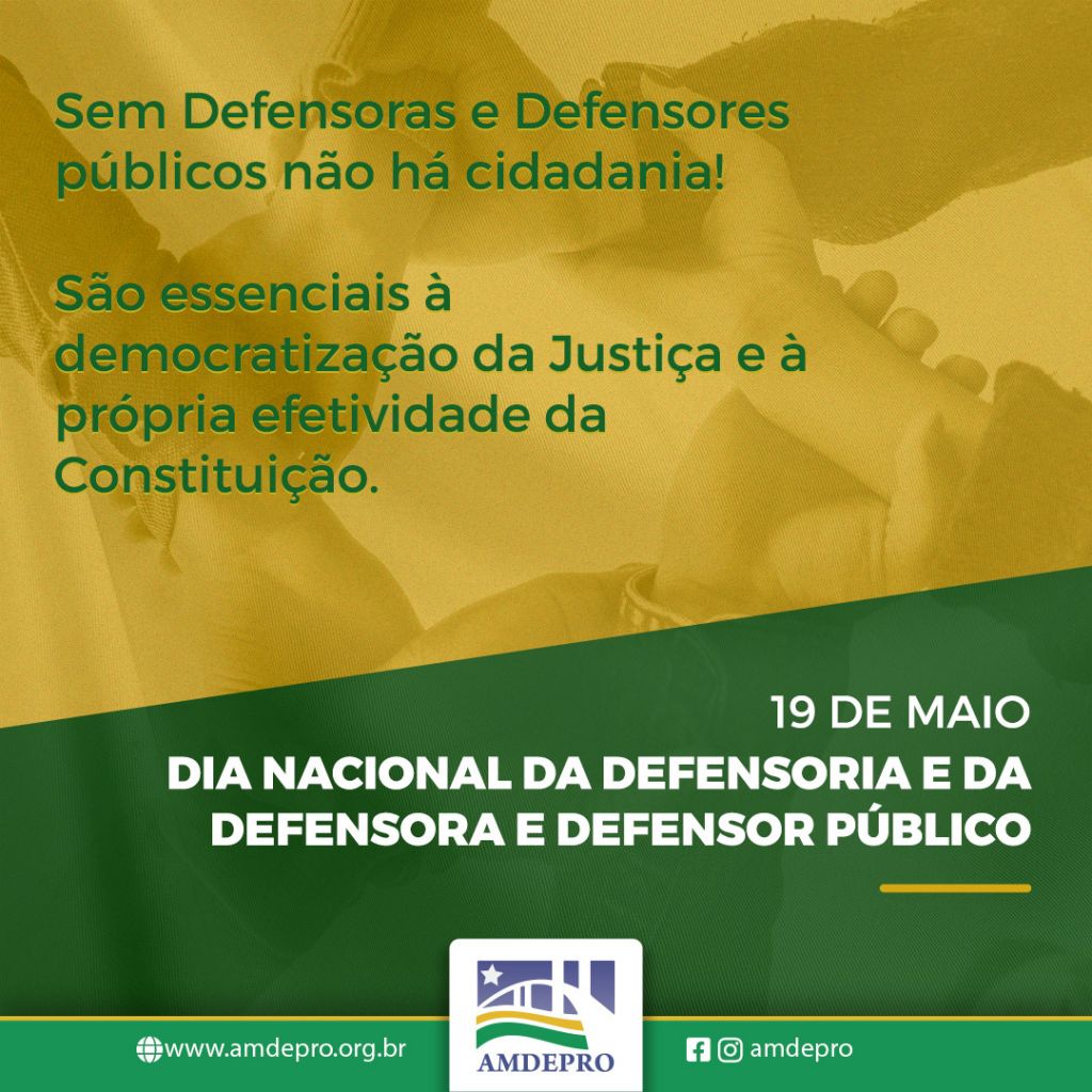 A Associação dos Membros da Defensoria Pública de Rondônia (Amdepro) parabeniza as defensoras e defensores públicos pelo Dia Nacional da Defensoria Pública e da Defensora e Defensor Público, comemorado no dia 19 de maio.
