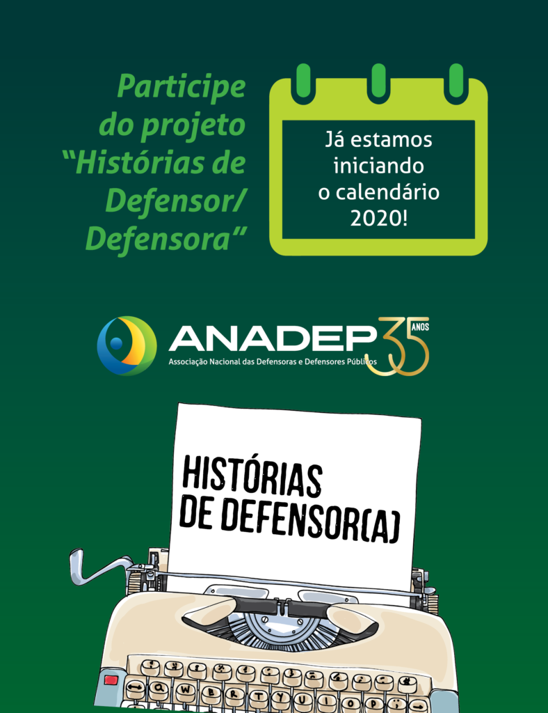 A Associação Nacional das Defensoras e Defensores Públicos (Anadep) realiza o projeto “Histórias de Defensor/Defensora”. A iniciativa tem por objetivo apresentar histórias de associadas e associados da entidade para além de aspectos práticos da carreira.