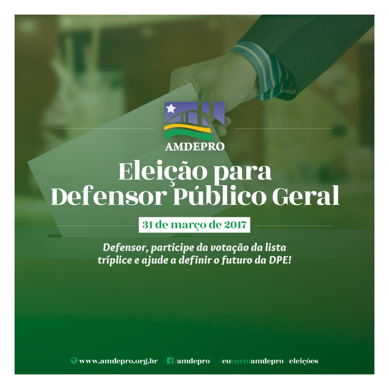 Será realizada nessa sexta-feira (31) a eleição para formação da lista tríplice para defensor público geral de Rondônia. A votação vai das 8h às 12h (horário local), na sala de reuniões da sede da Defensoria Pública do Estado (DPE), em Porto Velho (rua Padre Chiquinho, 913, bairro Pedrinhas). Poderão participar da votação como eleitores todos os membros da DPE, exceto os que estiverem afastados da carreira, inativos ou em gozo de licença por motivos particulares. Cada eleitor poderá votar em até três nomes.