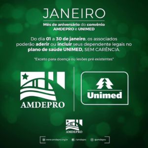 Janeiro é mês de aniversário do convênio firmado entre a Associação dos Membros da Defensoria Pública do Estado de Rondônia (Amdepro) e a Unimed. Em comemoração à data, quem ganha o presente são os defensores públicos. Até o próximo dia 30 de janeiro, os associados poderão aderir ou incluir seus dependentes legais no plano de saúde, sem carência.