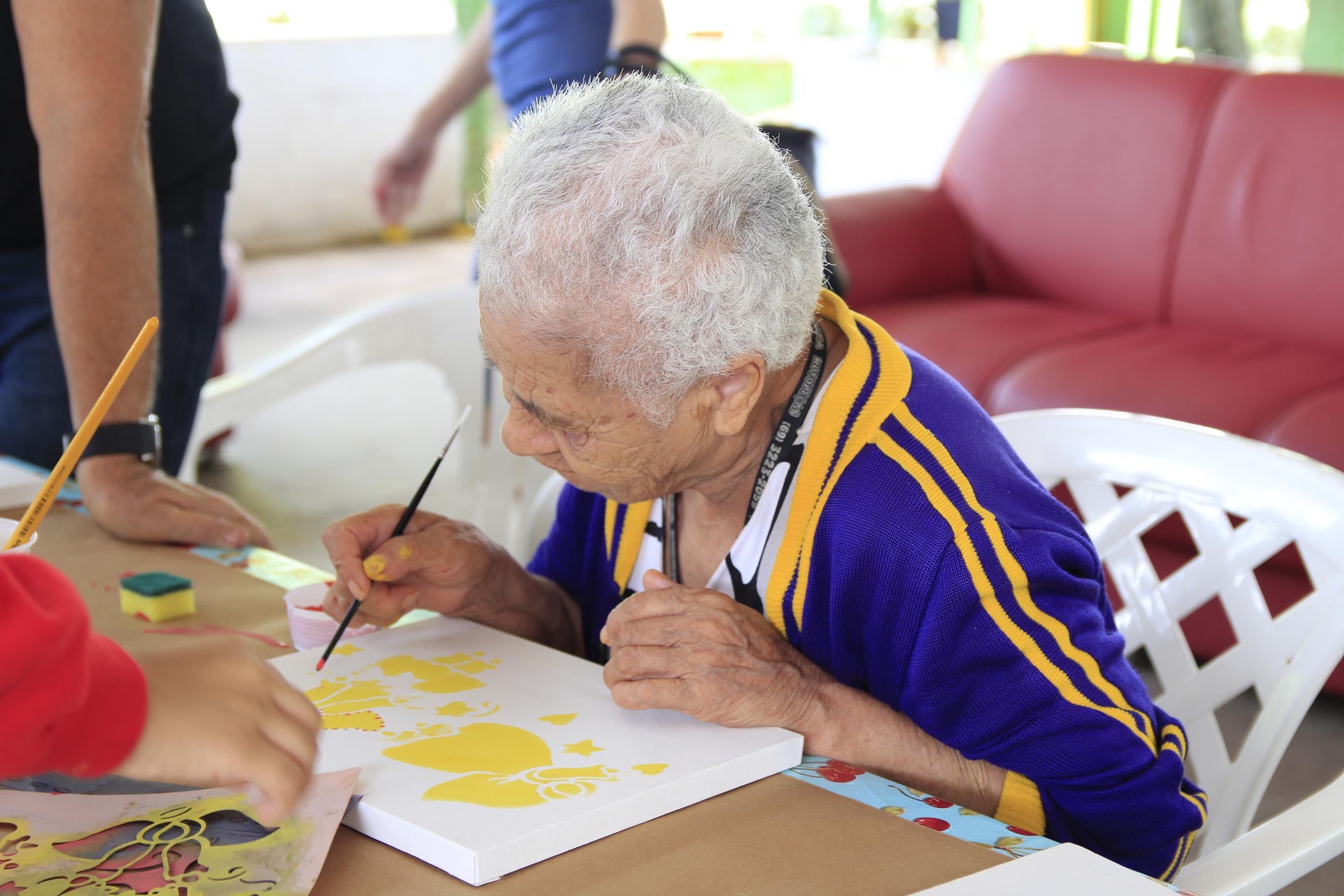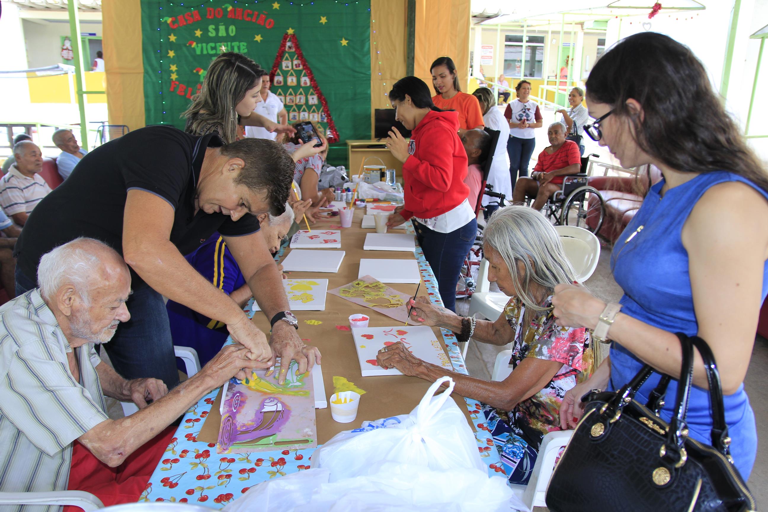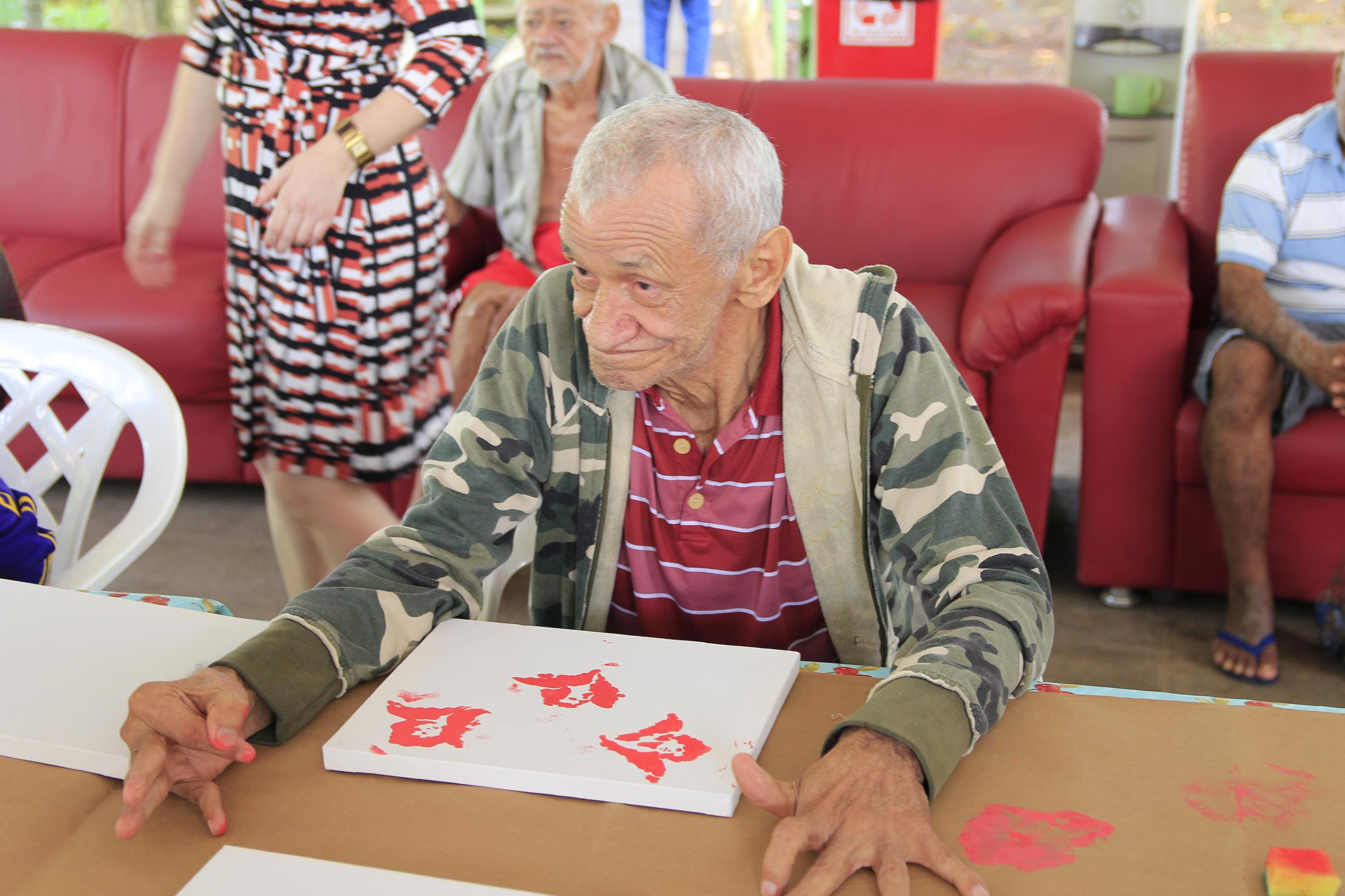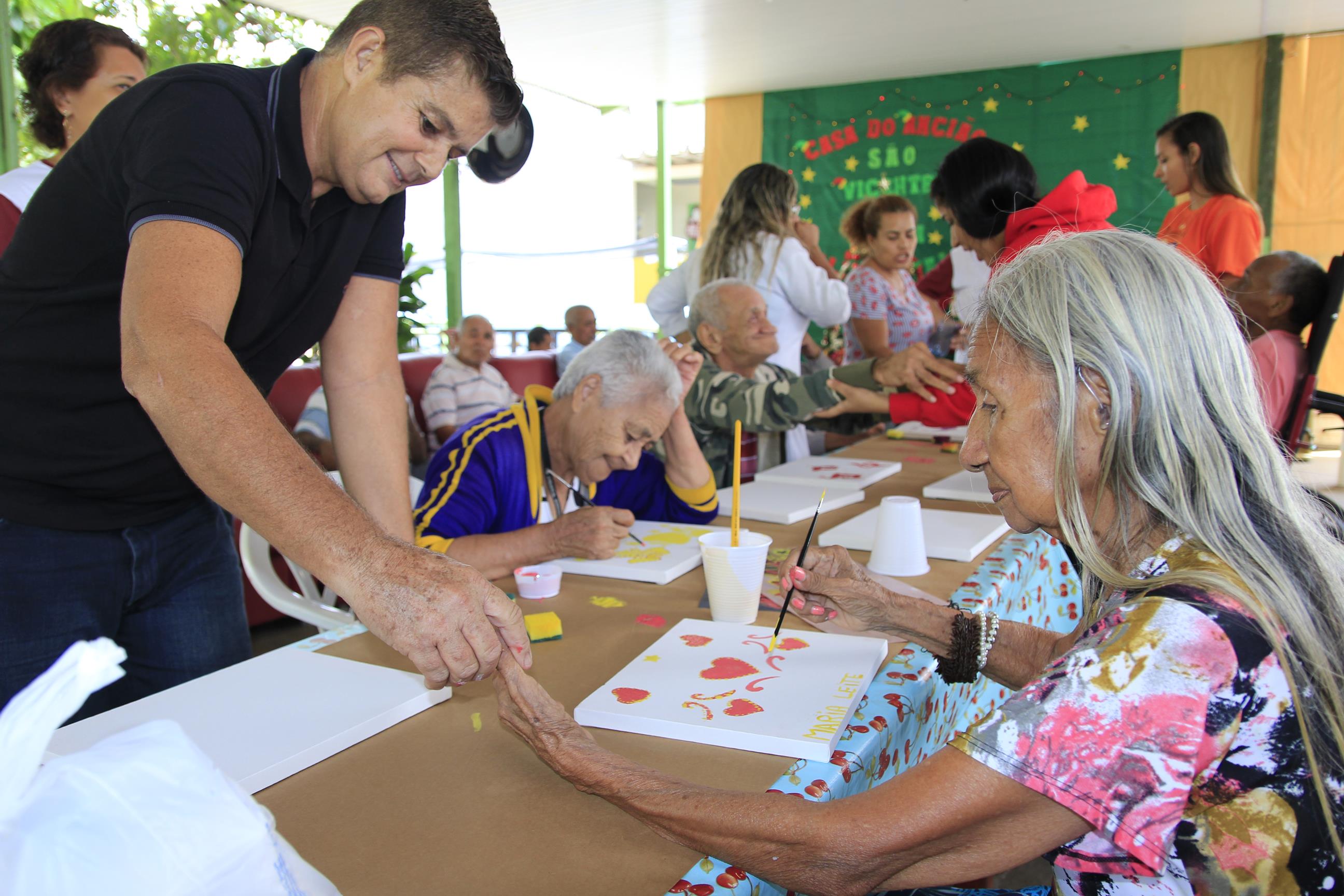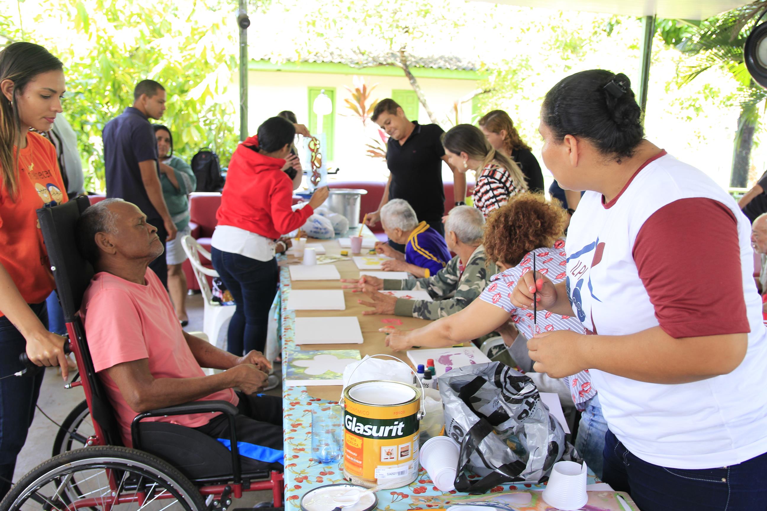Entrega de kits de higiene e atividade de pintura na Casa do Ancião