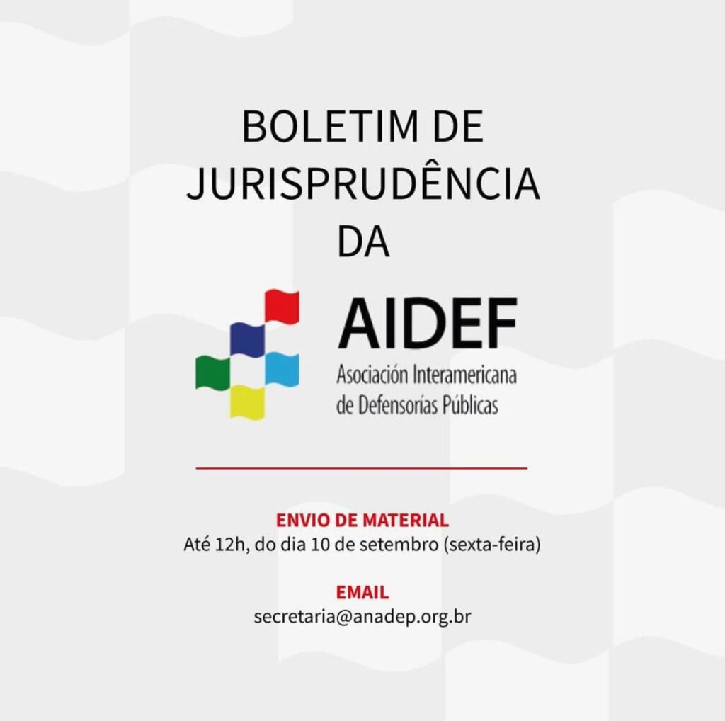 Prazo para recebimento de material para o próximo boletim de jurisprudência da Aidef está aberto até o dia 10 de setembro